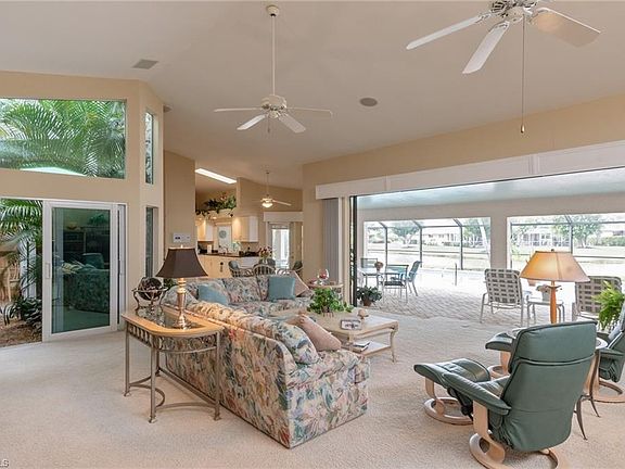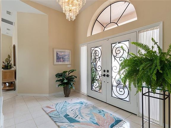 H.14165 - Wonderful custom floor plan with huge rooms and great view and sunsets. Walk through the double front doors to a true foyer and tropical atrium. A huge great room is light and bright with very high ceilings and a wall of glass that opens up to the oversized lanai. Lovely pavers and expansive covered space make this the perfect Florida lifestyle. The resurfaced pool is great for swimmers with a 54 foot lap lane. There is tons more space for sunning too. Additionally there is an updated pool bath. The open floor plan is great for large gatherings. The kitchen is light and bright and open to the main living area. A large dining room has a wall of lighted built-ins. The master suite has a large bath and a room size walk-in closet with organizers. The guest wing is on the opposite side of the home with lots more space. An oversized laundry room has a wall of closets and tons more storage. If all that isn't enough the garage has $9,000 in upgraded floors and cabinetry. New Tile roof was replaced January of 2016. The master side AC was replaced in 2018.