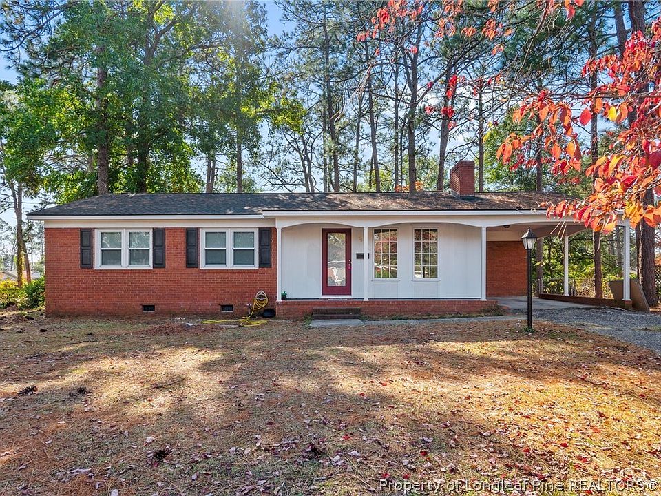 Great starter home in established community. This low maintenance brick ranch home features: 3 bedroom, 1 bath w/hardwood flooring in the main living area and bedrooms, living room has recessed lighting w/wood burning fireplace, the kitchen features tile flooring and has stainless steel appliances, upgraded lighting and plumbing fixtures, and a dining area w/French doors. The bathroom has been upgraded with a large tub/shower combo w/dual shower heads and upgraded vanity w/mirror. Large back yard w/chain link fencing. Must see- well kept home.