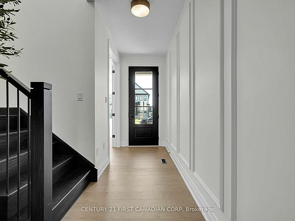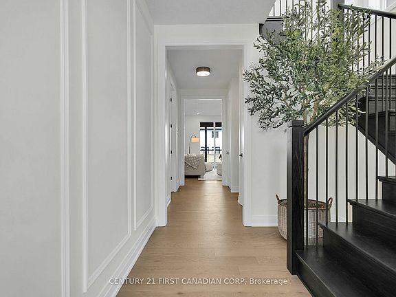 Introducing the "Villa" Model by DOMDAY Developments a stunning two-storey home offering 2,314 square feet of finished living space. This bright, open-concept layout features a living room, kitchen, and dining area with a large walk-in pantry or butler's pantry option, a spacious mudroom, and a desirable den. The upper level includes four bedrooms, highlighted by a master retreat with a generous walk-in closet and a luxurious five-piece ensuite. Additionally, there is a convenient laundry room on this level. This home is perfect for creating a multi-family living environment. It boasts impressive features and finishes ,including 9' ceilings on main, quartz countertops, large windows, numerous pot lights, and engineered hardwood flooring. Located in the beautiful Warbler Woods area of west London, this home is close to excellent schools, shopping, restaurants, parks, trails, and the innovative mixed-use community of West 5!