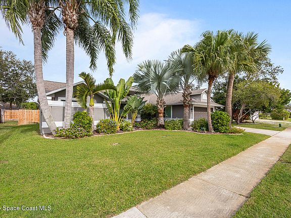 Live the Florida dream! This gorgeous 4 bedroom pool home has been well loved with many updates throughout! Lush & easy maintenance landscaping, screen enclosed pool & porch is perfect for entertaining. Chef's kitchen w/ quartz counters, stainless appliances, gas stove, ample cabinet space & pantry. Features a 2020 dimensional shingle roof, tankless gas water heater, impact windows, freshly painted, LVP floors throughout and a completely renovated master bathroom with soaking tub and huge shower! Nestled in the serene community of Croton Meadows, 9 minutes to ocean in Satellite Beach and within walking distance to Wickham Park, Eastern Florida State College & the King Center! This is a stunning must see home, come by today!