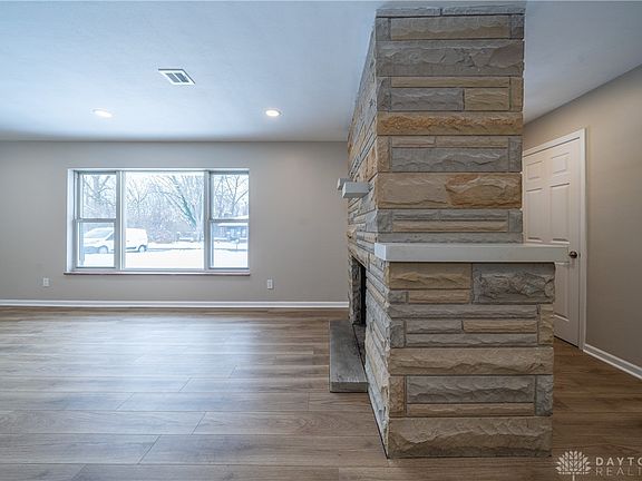 Freshly remodeled brick ranch on a classic, Beavercreek, tree lined lot. Situated within view of one of the largest boulevards in Beavercreek, you love the quiet neighborhood with a country feel. Pulling up, the double wide concrete driveway leads to both the front porch and the attached 2 car garage. The enclosed breezeway creates a perfect mudroom and a place to escape the weather before heading inside. Once inside, notice the new LVP flooring throughout. No thresholds, transitions or step downs in this slab home. Easily adapted to be ADA compliant if needed. Fresh paint from baseboards to ceilings, create a neutral palette. The kitchen boasts 42” upper cabinets, soft close drawers and doors, along with granite counters. The new stainless appliance suite makes this home move in ready. Adjacent to the kitchen and dining room, is the bright and airy living room, complete with a grand, stone, wood burning fireplace. The fireplace creates a foyer with coat closet and separates the main entry from the living space. Directly off the living room, is a third bedroom or office space. Through the hallway, you’ll find two nice sized bedrooms, a full hall bath with tub/shower combo and an additional laundry/utility room with an additional full bath, with stand up shower. The HVAC is new, along with the gas water heater. One outside spigot is designated for the well, perfect for watering the lawn or a garden. The home is attached to city water for all inside uses. New plumbing and updated electrical, complete with GFCI outlets. This home is like new, but surrounded by mature trees and a private back yard that is well over 1/2 acre. Don’t miss the screened in porch and huge patio behind the garage. This home has it all, make it yours today!