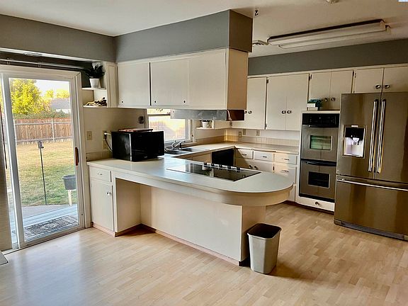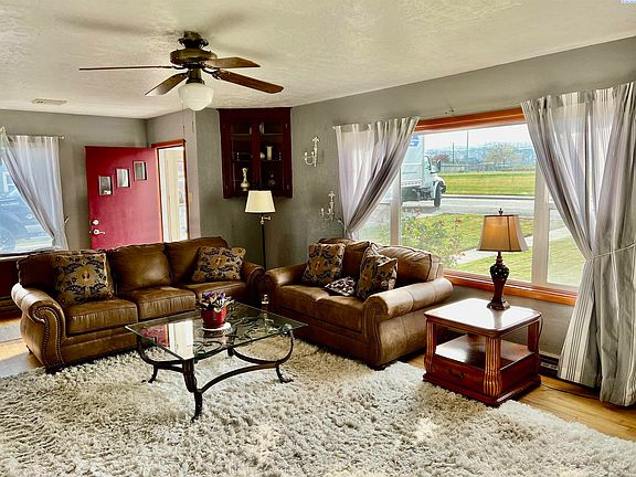 MLS# 265334 The location is great, walking distance to all schools. The front of the house has a nice view! Open space of the High School football field and the Hills in the back. The main level has 1653sf, basement is approx. 200sf with an outside entry, finished but no windows. Good for storage or sewing/office room. To the front/side the home has a large concrete pad for RV parking and or two cars. A shop can be built on it. The two-car garage is in the back of the property. The home has a Heat Pump for heating and cooling. The baseboard has been disabled.
