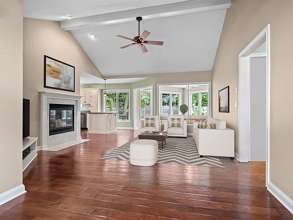 Come see the value and serenity of this exceptionally well maintained home that features a refreshingly different, open floor plan. Beautiful hand scraped engineered wood floors throughout the main living area and 4 season room. Welcome fall on the brick patio in a shaded, fenced backyard with low maintenance professional landscaping. Owner's suite features a tile step-in shower and separate tub, granite countertops, and updated fixtures. Separate laundry room plumbed for both gas and electric. The main floor features 2 bedrooms plus a den and sunroom. Be sure to go up the stairs off the den to the finished upper bedroom that could serve as a home office, rec room, or bonus room depending on your needs. Spacious closet space throughout plus an access door to the step in attic over the garage. Note the drains in the 2+ garage and the 5 foot bump out for a workbench or hobby space. You will appreciate the daylight window in the service door to the back yard. You will appreciate the gutter guards in the fall and spring. Make note of the following improvements: Furnace and CA new in 2017 and regularly serviced, Roof new in 2013, Water heater new in 2016, Garage door new in 2015, Kitchen appliances new in 2013, Patio door replaced in 2014, added the glass storm door and replaced the garage service door. The seller also added the kitchen island/breakfast bar with granite countertop. Note the side fencing was new in 2013 but the very back of the fence is the original and may need replaced in the near future. Some rooms have been digitally staged with furniture but accurately reflect the structure.