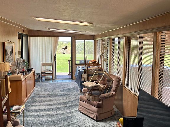 What a cute cabin-like park model in Juniper Ridge!! This home is right across the fairway with beautiful views of the course. Newer Duralast roof installed 2020 upgraded roofing material and 4 new skylights ($10,000) installed all by licensed roofing company. Newer water heater, microwave, TV, 2 hideaway beds to accommodate your guests. Insulated Shed. A nice large covered carport, skylights and natural light, and open kitchen. Well-kept home with plenty of square footage in the addition. This home has great potential and a great location in the park! Give us a call today!