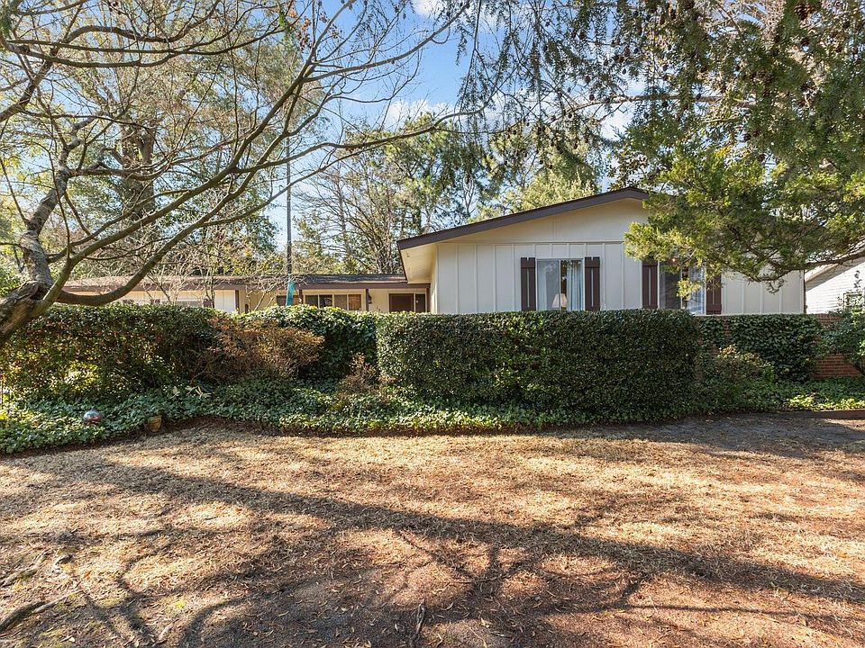 Nestled within the desired subd of Evergreen Estates sits this beautiful, well-loved 1 story ranch home that has been owned by the same family since the 60's. Now it awaits the next lucky owner to love and create new memories. Seller has priced the home so the next owner can update it to make it their own. Some distinctive features include: a beautiful private level .35 acre lot with fenced backyard that is landscaped with an abundance of gorgeous mature botanical plantings that will blossom this spring for your enjoyment; charming front porch with brick walled landscaped courtyard greet you and your guests; long concrete driveway for ample parking; 3 bedrooms 2 full baths with bonus room or 4th bedroom option; beautiful finished on-site real hardwood flooring in bedrooms, hallways and under carpet in living room; new carpet in bonus room; stunning cathedral ceilings with handsome wood beams in living room and bonus room; living room has a custom wood screen and wall of windows/sliders that fill the room with natural light; custom wrought iron chandelier in bonus room; 2nd bedroom has custom built-in wall of shelves; kitchen has gas wall oven, gas built-in cooktop, beautiful knotty pine cabinets and paneling, breakfast island with custom built-in drawers; washer and dryer currently in kitchen but can be moved to hall closet if desired; dining room with gorgeous knotty pine paneling, and oversized glass sliding doors that overlook the picturesque backyard; electric retractable SunSetter awning on back patio; 3 detached sheds in the backyard to accommodate all your storage needs; 2 attached storage rooms provide additional storage or future expansion of living space; all this and conveniently located within a short drive to Cape Fear Valley Hospital, Downtown Fay, Fort Liberty/Fort Bragg and more. Life is good here! Buyer's Agents Are Welcome. The Listing Agent is related to the Seller and is happy to answer any questions. Storage room refrig, kitchen refrig and washer and dryer can convey. Furniture in home can be sold separately if Buyer is interested.