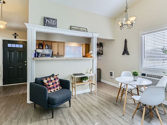 Welcome to your new home! This light-filled 2-bedroom, 1-bath upper-level condo offers 814 sq. ft. of comfortable and stylish living. Vaulted ceilings with skylights bathe the space in natural light, giving the entire home a bright, open, and airy atmosphere.The open-concept design features laminate flooring throughout and a kitchen that flows effortlessly into the living and dining areas—perfect for entertaining or relaxing at home. Step outside onto your private deck, an ideal spot to enjoy morning coffee or unwind after a long day. For added convenience, the condo includes a newer in-unit stackable washer and dryer. As part of a well-kept community, you’ll also enjoy access to a sparkling pool—perfect for summer afternoons and soaking up the sunshine.