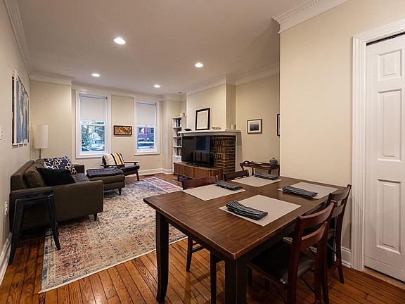 Enjoy living in vibrant Dupont Circle in this masterfully restored historic home with Heart Pine floors and recessed lighting. Located just steps away from shops and restaurants, but on a quiet, tree-lined, neighborhood street. Ideally situated north of Dupont Circle 3-minutes from the Redline and a short walk to Mitchell Park in the historic Kalorama Neighborhood and S Street Dog Park. The light-filled main level features soaring 9-foot ceilings and oversized windows. The open concept first floor makes an excellent layout for entertaining. The convenient and modern kitchen includes stainless steel appliances, granite countertops, and custom Cherry Wood cabinets that provide plenty of storage. The kitchen opens out to large backyard with patio perfect for bbqs and gardening. The second floor features two spacious bedrooms and two full baths with marble stone tile and custom vanities. Both upper-level bedrooms are spacious, filled with natural light, and include large closets and ceiling fans. The lower level (English basement) includes a large room with a walk-in closet and full bath that is ideal for a home office or a third bedroom. The basement also includes a large washer & dryer, separate entrance to the backyard, and AMPLE storage space. Central A/C and heat throughout the entire home. Insulated windows with custom blackout blinds. PLUS, one parking space included in rent. Pets allowed on a case by case basis with landlord approval.