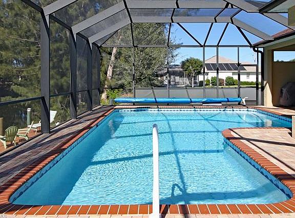 Experience this gorgeous 4 bed 3 bath, water front pool home in one of Cape Coral's most desirable neighborhoods. Just minutes to the Championship golf course of Palmetto Pines and close to shops and restaurants. This home is complemented with lush tropical landscaping and a paved walk way leading to your etched glass double entry doorway. Step inside your new home to picturesque views of the paved pool area and canal. The luxurious kitchen is complete with upgraded tall wood cabinets, granite counter tops, pantry and new stainless steel appliances including a double convection range. The master bedroom has wonderful views of the canal and a spa like master bathroom with a walk-through shower, separate jetted tub and dual vanitys. Three further guest bedrooms and 2 guest bathrooms gives you plenty of space for friends and family. One guest bathroom leads straight to the extended lanai area, no trailing water through the house from the pool! The paved pool area surrounds the huge heated pool with new pool pump and the pool cage was recently re-screened. Sit on your lanai and watch the beautiful sunsets or fish of the dock. This home is also available turnkey if desired.