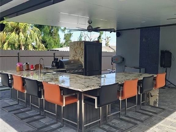 - Exterior features: Fence, Security/High Impact Doors, Sprinkler/Irrigation, Outdoor Kitchen, Outdoor Shower, Patio