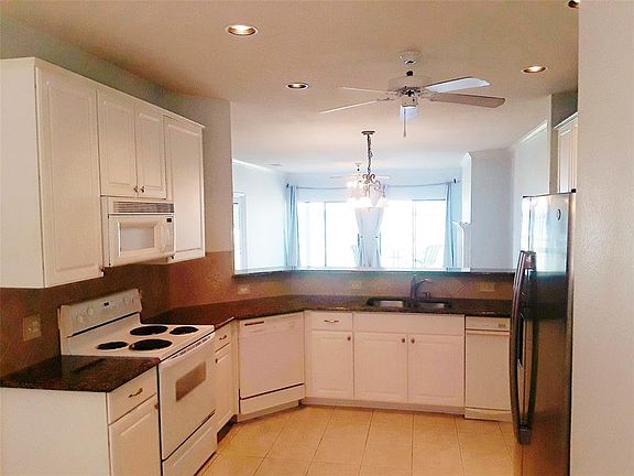 Unrestricted panoramic view of lake Ray Hubbard from den, kitchen and master. This is a ground floor lake front property. Updated carpet, paint, and heat pump. Updated bathrooms. Gas fireplace. Kitchen includes granite tops and refrigerator. Washer and dryer furnished. Private gated community in highly rated Rockwall ISD near the Harbor entertainment district and transportation. Move in ready now. Patio table and two chairs included.