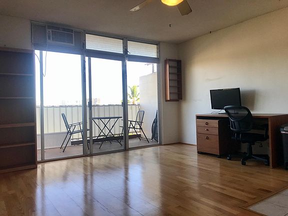 This is the perfect location if you work or go to school at UH! One bedroom third-floor apartment in University Court, right across the street from the University of Hawaii. Quiet walk-up building with an on-site resident manager. Partially furnished with desk, bookshelves, lanai bistro set, and miscellaneous small furnishings. Wood and tile floors throughout. Bedroom and living room both have window AC units and overhead fans. Kitchen is equipped with glass-top range, large toaster oven, and microwave (no full sized oven). Coin laundry on site. Sorry, this unit does not include a parking stall, but it is very close to multiple bus stops. A small dog or cat is allowed, subject to approval by owner. Building rules allow only one pet per unit. $1500 plus electricity. Please email the owner to visit the unit or to set up a virtual viewing. Tenant is responsible for electricity and any internet or cable services they wish to set up.