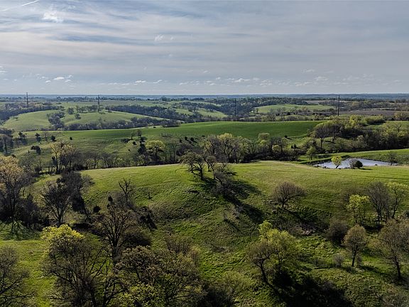 The 40+/- acres of mixed-use land consists of mature timber, productive hay/ag ground, and a 1/2 acre stocked pond. Enjoy regular sightings of deer, turkey, and quail. A scenic ridge leads to a peaceful hilltop spot, ideal for morning coffee or sunset views