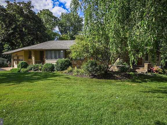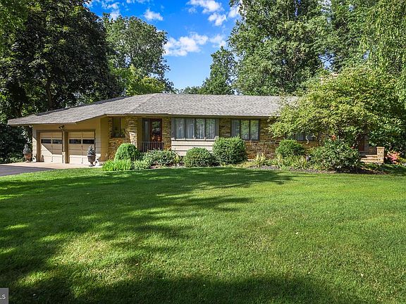 Open and inviting, this classic mid-century Yardley ranch has an abundance of space, charm and room for growth all just moments walk from the picturesque canal path. Don't be fooled by the quaint exterior! Inside, you'll find generous spaces and an opened floor plan that allows the bright and sunny rooms to flow together. Stepping inside, you're greeted by a cheery foyer that leads back through a glass door to a beautifully updated kitchen with hardwood cabinets, tile floor, granite counters and stainless steel appliances. Hardwood Floors throughout. Enjoy views of the yard from above the sink, or dine in the breakfast area that opens to a light-filled three-season room. Here, walls of louvred glass windows give you a peaceful view and are perfect for evening drinks or morning coffee. On the other side of the breakfast room, a large living and dining space runs across the front of the house. Three large sections of windows allow natural light to stream in, while a handsome corner fireplace at the far end anchors the space and adds a sense of hominess and cool-weather appeal. At the far end of the home, away from the hustle and bustle, a main bedroom suite offers a private bathroom, while two additional spacious bedrooms share a full hall bath. Down a set of open stairs, a large family room space awaits your vision and makes entertaining easy with walkout access to the yard. Around the corner find a conveniently located laundry room/powder room and an extra large storage room (currently used as a workshop). This space could easily be finished according to your needs and has both yard access and natural light from the window. No matter what your visions are, this home is ready to grow with you. The main level is over 1800 SF and that space is doubled when the lower level is taken into account; all on an almost half-acre lot on a quiet street in sought-after Pennsbury Schools. Oversized 2 car garage with full stairs up to additional storage space for your storage needs. Just a moment's walk to the canal or the river, and a few moment's drive to Yardley Borough. This is a must see !!!
