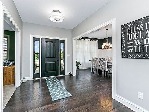 BETTER than new 2 story is ready to be yours! Everything is super-sized in this custom newer home from the over 4,000 fin sq feet above grade to the .75 walkout gorgeous lot, & one can't forget the over-sized 4 car garage! LOVE! The charming curb appeal w/dark gray blue & white trim with the gorgeous front porch will pull you in! As you enter the home take a moment in the HUGE entry to get a feel for the space. To your right is a large office/front formal and to the left a dining space with white wainscoting that pops against the navy. Keep going and enter the open floor plan of the great room, informal eating, & GOURMET kitch. Its soft, elegant, & classy! The sliders off your eat in area open to composite deck & gorgeous sunsets. The back drop zone, powder room, laundry, and GARAGE is not to be over looked. Head out to the gar. to see just how large it is, w/drains & heating capability. 4 beds up & large FROG room. Walkout basement ready for your stamp. County taxes.