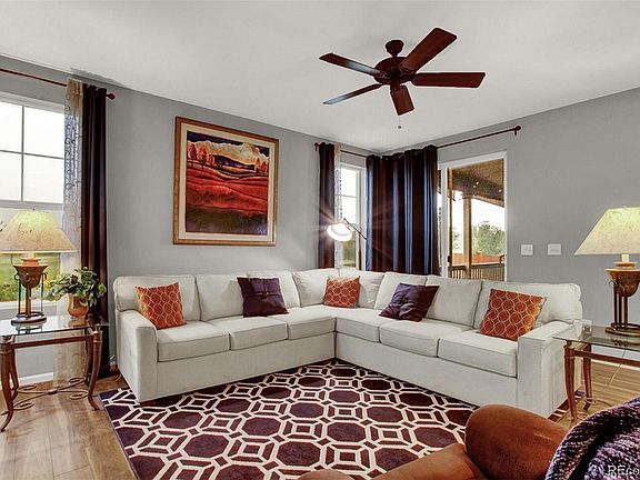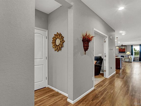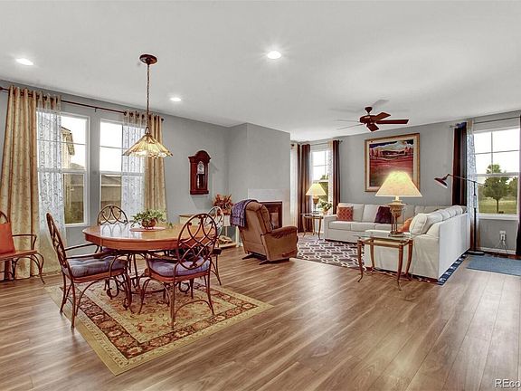 Stunning Ranch in Iliff Commons. This newer KB Home backs to a park and sides open space/walking path. Open floor plan with spacious family room, fireplace and dining area. Gourmet Kitchen with huge island, lots of cabinets, black appliances and pantry. Master bedroom with en suite bath and walk-in closet. 9 foot ceilings throughout. Main floor office which can be converted to a fourth bedroom. Laminate wood flooring, Ring Doorbell System, Nest thermostat and many other upgrades. Covered back patio is a wonderful place to entertain, watch the sunset (and watch fireworks!) Energy Star certified home H.E.R.S. 64. Close to Shopping, Schools, 15 minutes to DIA, and easy access to E-470. Dont miss this amazing home and rare location.