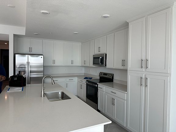 This brand-new 2-bedroom, 2-bathroom condo includes a spacious quartz island, new stainless-steel appliances, and an open-concept layout showcasing stunning lake and golf course views from the kitchen, living room, and lanai. Water is included in the rent. Some photos are digitally staged.