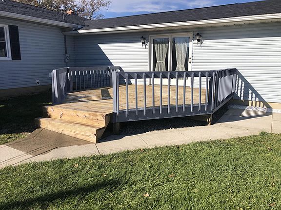 Cozy ranch ready for its new owner. This 3 BR, 1.5 bath, large family room with partial basement under. 2 car attached garage. NEW - roof 2021, HVAC 2021, slider 2021, front door w/storm 2021, gutters & downspouts 2021, new front porch pad 2021, siding 2019, windows 2019. Oversized 24 x 36 three bay detached garage and additional out building. Additional .615 ac (in the back) is being sold with home.