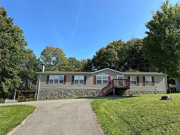 Country setting while still within a reasonable distance to the amenities offered by the surrounding towns. Spacious rooms, and an open concept floor plan give you plenty of room to live comfortably. The full, unfinished basement is your "Clean slate" awaiting any interior plans you may desire. Outside deck and patio space offer tremendous luxury to enjoy the outdoors. An extra added bonus is the comfort, and peace of mind offered by a brand new furnace in the home!