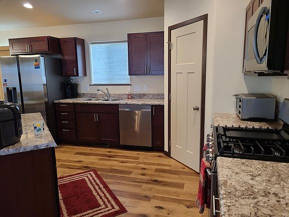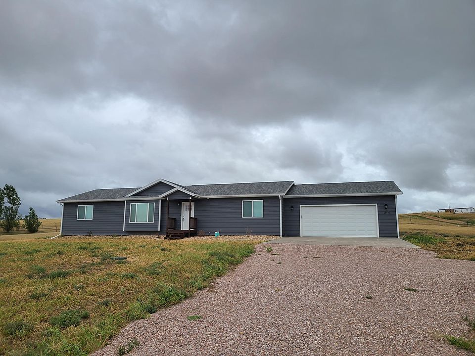 Call or Text Listing Agent - Sue Cramer - The Real Estate Center of Spearfish - 605-645-2391 for more information. This new construction 3 bedroom, 2 bath home has everything on one level. Vaulted ceilings. Luxury vinyl planking throughout the house, with the exception of the bedrooms that are carpeted. The owner's suite has a private bath with double sinks, 5' shower with seats on each end & a linen closet. The walk-in closet has double rods & built-in shelves. The kitchen has Cherry wood cabinets with pull-out drawers and soft close drawers. There is also a nice corner panty. All kitchen appliances are all new stainless steel, gas stove has a griddle. Washer & dryer are included. There is plenty of storage throughout the house and the garage has a pull-down ladder for storage in the attic of garage. Plenty of space in the attached 2 car garage. The 2 acres has plenty of room for a shop! Some landscaping is completed with edging and rock around the house. Front lawn will be seeded by August 31st. Water is $50/month for up to 3000 gals. Buyer is responsible for verifying all information on this MLS document.