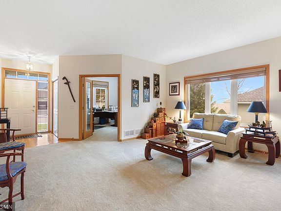 Welcome Home to one level living at its finest without the burden of exterior maintenance! With over 3600 finished square feet spread between the basement and main level, you'll never worry about not having enough room! Home features two bedrooms on the main level, a stunning four season walkout porch, affixed cabinets on the sides of the fireplace, a walk-in kitchen pantry, enormous living spaces, and a gorgeous master bath. Downstairs enjoy an oversized recreation room, a third bedroom/bath, generous closet space, and a 600 square foot unfinished area for mechanicals and extensive storage availability. Meticulously maintained, upgrades include a new water softener in 2023, an active radon mitigation system, and a newer roof. Superbly located in central Lakeville, enjoy easy access to nearby parks, schools, resturants, and I35. Pride of ownership from top to bottom, see our 3D Matterport virtual tour for more!