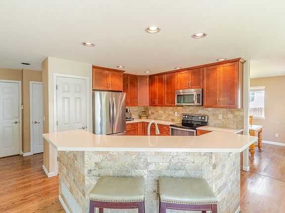 Don't miss this beautiful home in North Table Mountain Village in Golden where suburban living with a mountain feel is perfectly combined! In the kitchen, quartz countertops accent the custom cabinets, updated backsplash and stainless steel appliances. Natural light fills the dining room and breakfast nook and showcases the hardwood floors. Upstairs you will find the master bedroom and three additional bedrooms. There is plenty of room in the spacious finished basement and large backyard. Enjoy picture perfect views of North Table Mountain from the master bedroom, living room and south facing front porch. The highlights of living in this location include proximity to downtown Golden, numerous walking/hiking/bike paths on North Table Mountain and in White Ranch Park, breweries/dining/shopping, and so much more. Convenient access to Hwy 93 gets you to Boulder fast and being within 15 minutes of I70, 6th Ave, and C470 makes for easy commuting, city adventures, and mountain escapes.