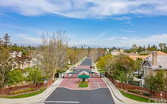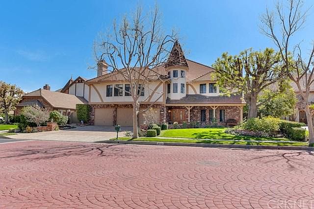 Welcome to Running Springs, one of most distinguished guard gated communities in Northridge, offering 41 custom dream homes. Architecturally stunning English Tudor, dramatic lines & character abounds. Almost 5600 sq ft on a 17,500 sq ft lot, 5 bedrooms, 6 baths, plus office, bonus room, downstairs bedroom, 4 fireplaces, pool/spa and Sport Court. Elegant, sophisticated with stately lines, perfect for entertaining! The home exudes warmth, character and beckons memory making. This flat nearly 1/2 acre lot feels like a resort, spectacular pool/spa with built in slide, custom stone work, patios, gazebo, oversized outdoor kitchen, Sport Court and still lots of peaceful mature landscaping and expansive grassy area. The craftmanship of this fine estate is truly a sight to behold. Inlaid flooring, coffered ceilings, rich warm wood custom panelling & wainscoting, crown moldings, beamed gridded ceilings, soaring wood open beam ceilings in Bonus Room. 5 bedrooms plus an office w/ leaded glass windows, turret & custom panelling are the perfect setting to work in this home office. Spacious Chefs kitchen, center island, stainless steel appliances & professional style range, the perfect space to make gourmet meals. The breakfast nook overlooks rear yards, this kitchen is so special. Each bedroom is ensuite, the Master Suite is so romantic & inviting with sitting area, fireplace, his & hers walk in closets, dry sauna & large walk out balcony over looking sprawling manicured grounds.