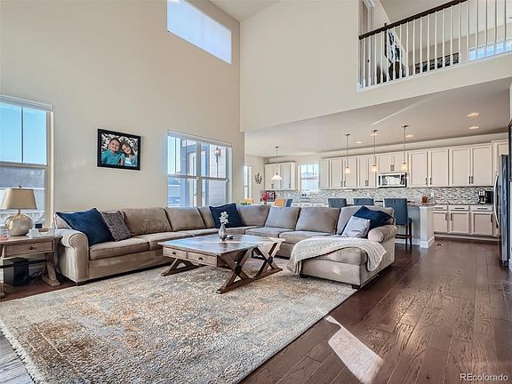 Spacious 4 Bedroom, 4 Bath Home sitting high in Leyden Rock next to greenbelt with walk-out basement and oversized 3 car garage. The 4th Bathroom was an upgrade that many homes in the area don't have. Main floor features an expansive Kitchen with 42" upper cabinets, Eating space, Breakfast bar, Granite countertops, Walk-in pantry, and Stainless appliances; including Double Oven, Gas Cook-top, and Built-in Microwave. Gorgeous oak wide plank flooring throughout Great Room, Kitchen, and Dining Room. Great room is adjacent gourmet kitchen, perfect for entertaining. Dining room has a see through, double-sided fireplace to the Great Room. Office study with view of downtown skyline and Open Space. Upper level features Large Primary Suite with 5-Piece Bath, and Walk-in Closet. Laundry room conveniently on Upper Level. Two HVAC systems allow for zone comfort control of the 2nd floor separate from the main floor and basement. Bottom up, top down window coverings for maximum views. Unfinished basement has walk out to a patio with Hot Tub and a Backyard with carefree artificial turf. South facing deck and patio means you can enjoy the Colorado sunshine all winter long. Sprinkler and drip system in front and backyard. 3 Parks and the Clubhouse and Pool are all within easy walking distance, as well as miles of trails and paths winding throughout the nearby open spaces.