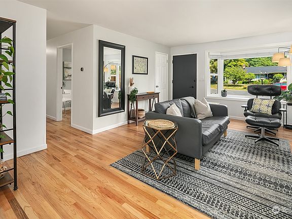 Move-in ready rambler in prime location with sidewalks, amazing parks, grocery & 185th light rail station opening next month! Lovely living room greets you w/ sunny bay window & wood fireplace. Fully remodeled kitchen complete w/ coffee bar, quartz counters, custom cabinets, tile floor, new dishwasher & sexy Viking gas range! Huge primary bedroom- fits a king size bed plus room for desk/dresser. Updated bathroom w/ designer finishes. New furnace & hot water tank. Refinished oak hardwood floors throughout living space & bedrooms. Energy efficient double pane windows & Nest thermostat. Covered patio for grilling year round. Large level lot w/ HUGE shed for all your hobbyists dreams plus additional garden shed. Get ready to entertain!