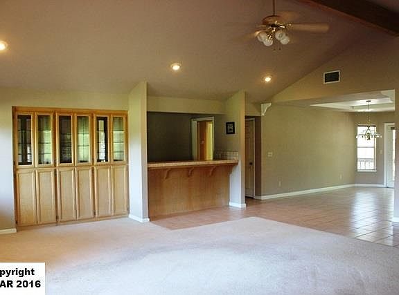 Extra Large Garage apx. 2000 sq. ft. You could park 5 cars in it, or it could be a fantastic shop. the driveway is large enough to accommodate all the cars and a few more. Views of the golf course an the deck wraps around 3 sides of the house with a large portion covered. The master suite has a jacuzzi tub and separate shower, spacious counter tops and duel sinks. The great room is just that a great room with a airtight wood burning fireplace with a fan, and a wet bar.