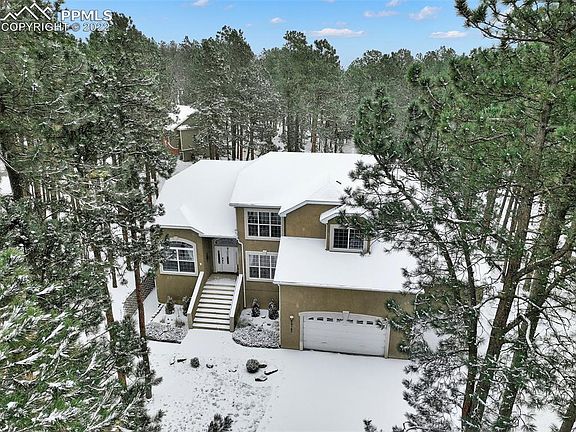 One of a kind custom home nestled on more than one-half acre among the trees and wildlife of Woodmoor Forest! This grand home features more than 5500 sf with 6 bedrooms and 6 baths... Featuring "True Main Level Living" in a two-story floor plan. Discover fine touches everywhere... Soaring ceilings, travertine flooring w/ granite accents, custom trim work and crown molding, oil rubbed bronze fixtures, granite counters throughout the home and custom cherry cabinetry. The open floor plan features a generous living room adjacent to the well appointed kitchen with abundant cabinetry and countertops... The perfect space for entertaining or time together. From here you can also catch views of nature, the backyard and play areas, as well as transition to the spacious deck for outside fun. The family room also features 2 story ceilings, decorative accents and a cozy fireplace. The main level master has a fireplace and a luxury 5 piece bath with jacuzzi tub, walk in closet, make up vanity area and 2 headed walk in shower. The remainder of your main level includes an office, formal dining room with butler's panty and laundry. Travel up your dramatic showpiece staircase to find 3 additional bedrooms and 2 full baths. The basement is ideal for entertaining and gatherings with a wet bar that features two stainless refrigerators, recreation room, two more bedrooms (one with a sitting area and walkout), two more bathrooms (one with a steam shower) and a media room that can double as an exercise room. You'd never know this grand custom wooded retreat offers quick access to I-25, as well as shopping and dining. True Colorado Living at it's Best!