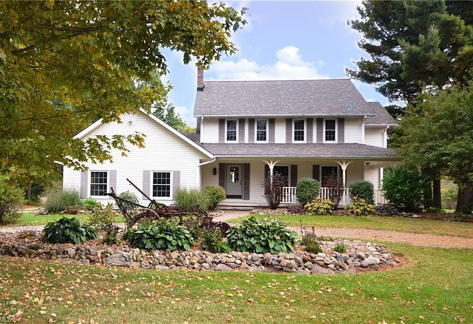 Tucked back off the road sits this updated 4 BR/2.5 BA traditional Colonial situated on 9+ scenic acres. The beautiful wrap-around frt porch welcomes you home as you step into your foyer. The eat-in kitchen offers Silestone quartz counter-tops, built-in oven, counter-top range, insta-pot, ceramic tile flrs & ample storage/counter space for all your culinary needs. Relax in your family rm w/floor to ceiling stone faced WBFP & lots of windows to let the natural light stream in. Remodeled 1st-fl laundry rm (2019) has newer cabinets, counters & flooring. Dining rm (currently used as a den), living rm & half BA complete the 1st flr. The spacious 2nd fl owners suite w/upgraded en-suite has marble accented walls & flooring, dual sinks, deep bubble tub & separate shower. Three more bedrooms (1 w/walk-up attic access) w/3/4 inch hardwood maple floors & a full bath complete the 2nd flr. The 2 car attached garage has pull-down stairs that lead to an add'l attic area. Step outside to your beautifully landscaped yard, koi pond w/water feature & English garden. Huge 40x48 barn/outbuilding w/loft & tool rm is perfect for storing lawn equipment, snow blower or even a boat! Potential horse property - just add stalls in the barn! The North & East borders of your property abut hundreds of acres of City of Akron Watershed Land for your privacy & hiking adventures! Enjoy the peace & quiet of country living while being just minutes from Rt 422. Septic passed w/Geauga County. Begin Your Story Here!