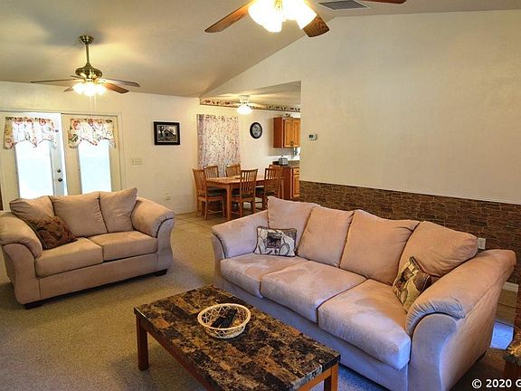 Located near the downtown area of High Springs, this attractive home is in a neighborhood of a few short streets with little traffic other than residents, and is only two blocks from the High Springs Middle School (elem and middle). Features include a screened back porch overlooking a chain link fence back yard area ideal for pets, a vaulted ceiling over the living room and dining area, a laundry room off the kitchen, and an electric "fireplace" in the living room. The back yard also has a storage shed and a wooden privacy fence on the back lot line. The front yard has a semi-circular gravel driveway. Just a few blocks from the heart of downtown, it's tucked into a pleasant neighborhood among the most popular in town. The Civic Center and city park are three blocks to the north.