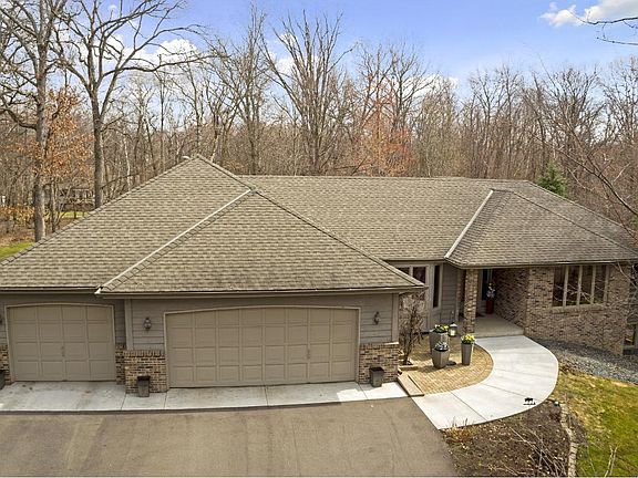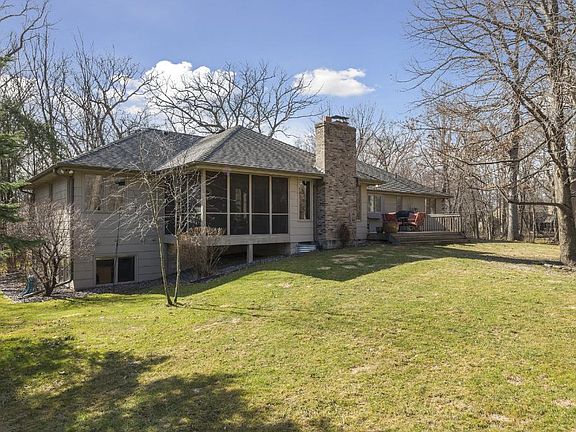 Beautiful expansive rambler on over on 2.5 wooded acres, wooded/in demand neighborhood of Sunset Ridge, convenient location. Impeccably maintained w/newer furnace/flooring/driveway/ Lg main flr owners suite w/private bath/sep whirlpool tub/shower. Enjoy the backyard serenity w/deck, screened in porch & water feature/planters. Lower Level w/sep access to garage. Main Floor den could be 4th bdrm. Mn Flr Laundry. 2 Fam Rms/Frplcs. Quality custom built. Abundance of cabinets w/center island.