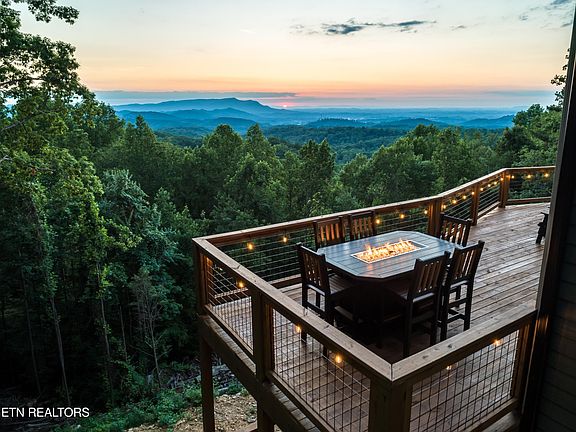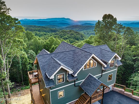 VIEWS, VIEWS, VIEWS!!! BRAND NEW, TURNKEY, SPRINKLERS INSTALLED & FULLY FURNISHED CABIN IN THE HEART OF THE HIGHLY DESIRED & VISITED SMOKY MOUNTAINS. Walking in the door, you'll be in awe of the T&G ceilings, scissor trusses, floor to ceiling fireplace & windows & gorgeous, long-range, smoky mountain views. The main level features an open concept in the oversized living room, well-appointed & fully-stocked kitchen & dining room, a master suite w/ its' own fireplace & bath, and an office/laundry room. Upstairs you'll find a spacious master suite w/ its' own fireplace & stunning bathroom, two more bedrooms, full bathroom & a loft w/ the most stunning views from the sitting area. Downstairs you'll find a wet bar & open game area, an oversized movie room, workout area, kids play area, double twin over full built-in bunk area & a full bathroom. Out back, the cabin features two expansive decks w/ a hot tub, an irresistible fire pit table & Adirondack chairs great for relaxing & taking in the gorgeous Smoky Mountain views & downtown Pigeon Forge. This cabin is conveniently located between Pigeon Forge & Gatlinburg, so just a short drive to all of the local attractions.