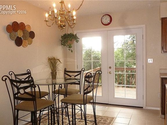 Lovely four bedroom two bath home situated on almost a quarter acre lot in highly sought-after Briargate with District 20 schools. Freshly painted interior. All new carpet. New tile in kitchen and baths. New French doors to deck overlooking back yard. Pikes Peak views for the deck. Upper level has eat in kitchen with counter bar and a full set of appliances. The light bright and open floor plan features a large greatroom on the upper level along with the master bedroom and a 2nd bedroom. The garden level lower level has a large family room with wood burning brick fireplace and large storage closet on other end. There are Jack and Jill bedrooms also with 3/4 bath between the two. Additionally, the lower level has laundry facilities with electric hookups. The oversized 2 car attached garage has plenty of room for workshop.
