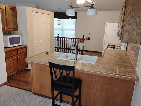 Large 4 bedroom home with an office, 3 full baths, all appliances, central heat and air, walk out basement, laundry room, utility room, basement kitchen (no range and no refrigerator), well water, tenant pays Electric and propane. 2 car garage. Large covered deck. Very nice home! on 6 acres.