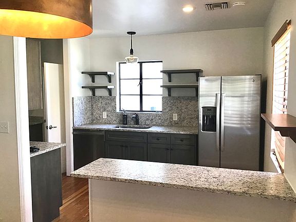 Modern, beautiful 3Bdrm, 2ba Unfurnished in Sam Hughes, 1m to UofA. Home located in historic Sam Hughes and 1 mile to University of AZ. Home has Solar energy. For an additional $250 the Owner pays the Electric, Water, Trash and Cox internet. Tenant pays gas. Lease is for 1 yr. As you enter through the Living Rm enjoy the beautiful Hard wood floors. Kitchen has upgraded stainless steel appliances including dishwasher, gas stove, side by side refrigerator and garbage disposal. Home has stackable washer and dryer. There are 2 bedrooms in the front area of the home with a modern remodeled bathroom. The third bedroom is a SUITE with a bed area big enough for a King bed, plus a large sitting room and a kitchenette that includes a refrigerator, kitchen sink and cabinets. Large modern bathroom and walk in closet. Private backyard Porch to seat out in the evening. Security deposit is equivalent to one months rent. $50 application fee can be done online. Contact agent for showing details.