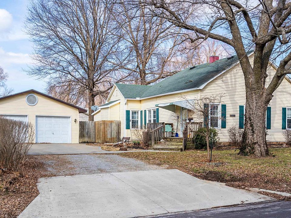 Pull up to this 3 bed, 1 bath house and fall in love with all the character! There are so many nooks and crannies in this house, it's a dream for anyone who loves organization and storage. There are original hardwood floors throughout the spacious living and dining room and in 2 of the bedrooms. The kitchen is large enough to cook and entertain in. Walk out the french doors onto a covered backporch to enjoy your morning coffee. The yard is totally fenced in and has access to the 2 car detached garage that is perfect for any hobby since it's heated and cooled! There's a partial basement for extra storage and a battery back up sump pump. The furnace and AC unit have been recently replaced.