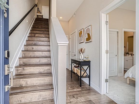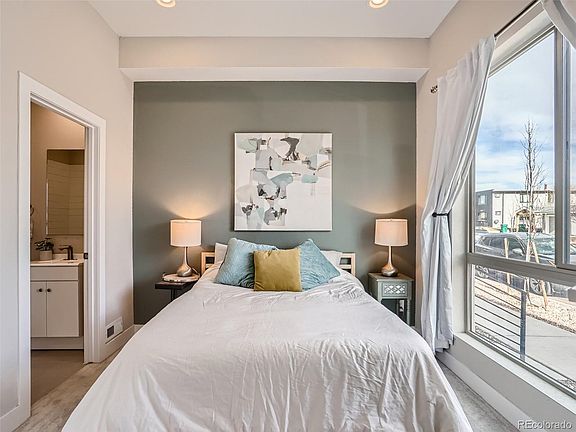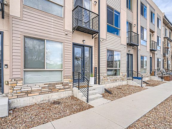 Looking for urban living at its finest? Look no further! Get enveloped by luxury living in this contemporary townhome in the ideal location, just a block from Edgewater Marketplace and 5 blocks from Sloan's Lake. Walking into the main level be greeted by a bright east facing entryway with the first of three bedrooms with an en suite. This level is also home to the rare attached two car garage. Up the stairs to the second floor, sunshine abounds in the gorgeous living space showcasing an open concept design. The kitchen comes complete with elegant quartz countertops, a spacious kitchen island, and top tier stainless steel appliances. Next you will find a wonderful dining space with a conveniently located half bathroom. Just steps away is the living space, flooded by light, views of downtown, and a sliding glass door to the Juliet balcony. Soaring 9 foot ceilings throughout make for an elevated feel. Step up to the third floor to the luxurious primary suite, laundry and the third bedroom with an en suite. The primary suite boasts a beautiful walk in shower, private toilet and walk-in closet. The washer and dryer are just steps from the two third level bedrooms. Walk into the third bedroom to be welcomed by more city views, ample closet space and a large full bathroom. Ascend to the top floor to find the private rooftop deck providing unobstructed panoramic views of Sloan's Lake/downtown to the east and breathtaking mountain views to the west. Relish this location of being only a 5 minute walk to Edgewater Marketplace, Walker-Branch Park, Target and all of the other shopping and eating right out the front door. Enjoy no HOA fees. This townhome truly has it all!