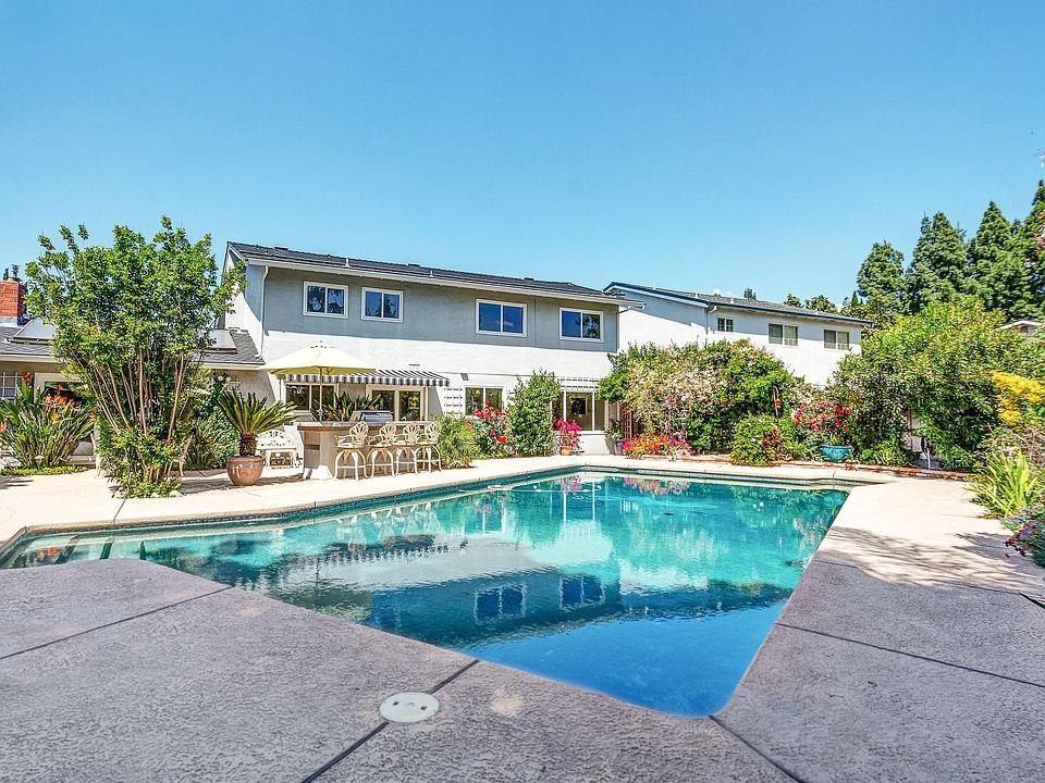 A truly awe-inspiring Heritage model estate. Located in the picturesque Birdland neighborhood, this gorgeous home is within walking distance of the highly acclaimed Ken Mercer Sports Park, three top-rated schools, and multiple shopping areas! The interior is freshly painted with dual pane windows, new carpet, recessed lighting along with updated electrical and all new outlets. An elegant yet quaint formal dining room provides a view of the pool and rear gardens. The updated kitchen showcases its granite counters, stainless steel appliances, walk-in pantry, and a secondary dining area. On the first level, you conveniently have a full bath and a main level bedroom. The master bedroom is a sanctuary of its own with a spacious split bath, shaded balcony with a view, and a retreat area. There are multiple vibrant garden areas and a pond with a cascading waterfall flowing into the custom solar-powered pool. A lot size of 8757 sq. ft. and living space of 2560 sq. ft. A home for entertaining!