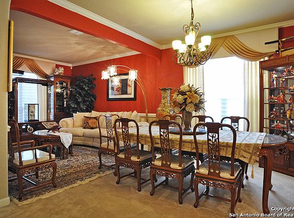 AMAZING,Well Maintained,Bryson floor plan w/up to 6 Bedrooms & 4 Full baths.This home has it ALL. 2 Living Rms,2 Dining Rms,Crown molding, Island Kitchen w/office area, Dbl. Ovens,Eat at bar,Tile Entry & Kitchen,Granite Countertops,Butler's pantry,HUGE walk in pantry,Plantation Shutters, Family Room w/Fireplace,Game rm., Media Rm.,HUGE Master Bdrm w/Separate Tub & Shower & Dbl. sinks,Office down-could be a bdrm & Secondary Bdrm down.Great Location close to Randolph AFB,Ft. Sam.& Major highways. NEISD Schools.
