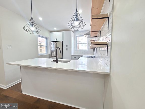 Welcome home to 1915 Independence st, a picturesque 4 bed, 2 bath end row family home nestled on an almost 1600 square foot lot with it's own driveway! This Philadelphia brick boasts oak hardwood floors, oak staircase complete with iron railings from ground level to second floors. Truly a one of a kind home beautifully encompassed with luxury vinyl siding in the front and rear exteriors accompanied with exterior sensory light. Exterior lights turn on and off automatically during sun rise and sunset. Enter through the front just up 3 steps into the naturally lit enclosed tiled porch with large mirrored coat closet . This space can serve as a mud room, office, or just for a relaxing space in mornings and evenings. This enclosed porch leads to the main level of the home with an open concept living , dining, and kitchen. The kitchen located in the rear of the home boasts stainless steel appliances, garbage disposal, open shelving and large kitchen pantry . The luxury GE Cafe refrigerator also dispenses not only cold water but also hot water and ice. The stove has 5 burners with an oven option to "AirFry" To the left of the kitchen is the rear exit door that leads you onto the deck where you can sit a couple chairs and add your grill for those unforgettable summer nights. Heading to the second floor you will find 3 bedrooms. Master and Rear bedrooms both finished with mirrored wall to wall closets, and completed with an elegant hallway bathroom with soaking tub a large bathroom vanity finished with gold hardware and and brand new operable skylight. Down to the ground level you will find an amazing space for a master-suite also suitable for a "great room" finished with a hallway closet and full bathroom. Bathroom complete with standing shower and large vanity. Ground level walk out stairs leads you directly to the large yard . This space could be used as a driveway and also doubles as a large yard, enclosed with modern farm style fence, stairs to the deck. Manual barn doors with wheels make it easy to park your vehicle. Transportation just steps from home. 6 minutes to Greenleaf shopping plaza and 7 minuets to Cedarbrook Plaza over giving you 67 stores to shop at! Call for an appointment today.