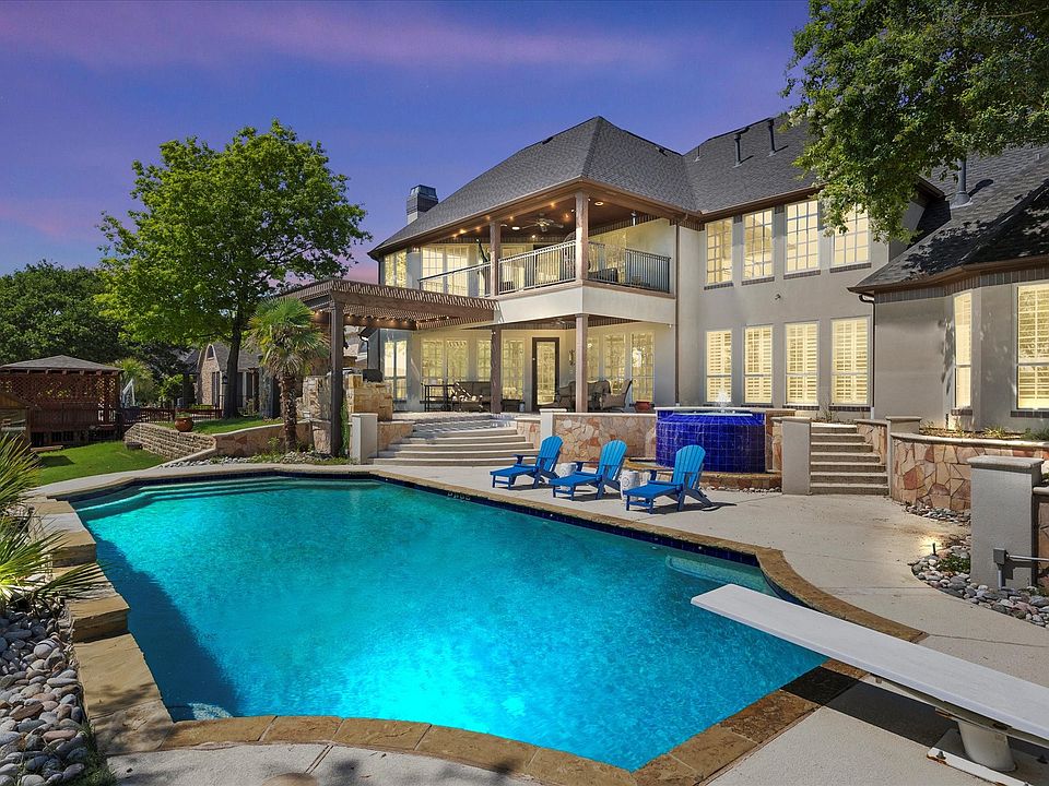 Gorgeous Five-bedroom home located in the sought after Buffalo Creek Country Club. The breathtaking foyer leads into a formal living room with floor-to-ceiling windows. The spacious family room opens to a island kitchen featuring a breakfast bar, granite counter tops a breakfast area, and a Butlers pantry that connects to the formal dining room. The first floor Primary suite boasts a spa-like bathroom with a over sized shower, jetted tub, and a impressive closet with vaulted ceilings and a island. A secondary bedroom is also on the first floor. Upstairs you'll find a large game room with a wet bar, three additional bedrooms, and a balcony. The covered patio includes a built-in kitchen with a Viking Grill and opens to a Multi-Level yard. with a spa overlooking a sparking pool, backing up to Green field's for Privacy. A beautiful Greenhouse completes this exceptional property.