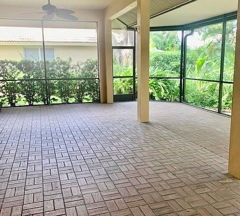 There is great curb appeal on this three-bedroom-plus-den home with a bonus room located in the convenient North Naples gated community of Mill Run in The Crossings. This home is situated on a quiet cul-de-sac street, with a welcoming paver driveway and entry with patio area featuring mature tropical vegetation including blooming orchids. Features include formal plus informal dining, living and family rooms and split bedrooms with a Murphy bed in one of them. The big bonus is a huge room on the second floor, accessed by a spiral stairway, to be used as a home office, fourth bedroom or play room with skylights, a sink and rough-in for future bathroom. This home offers a recently painted interior, storm protection throughout, workbench and storage in the garage, a huge laundry/hobby room on the main level and room for a pool if desired. In one of the most sought-after school districts, the neighborhood features extremely low fees with amenities including spacious lots, a community pool, spa, clubhouse and tennis court.