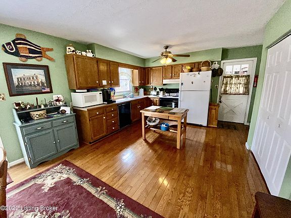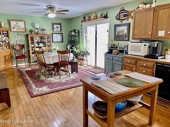 HOME & ACREAGE ~ Country living in Your new, Move In Ready 3BR/2 Full Bath, 1400+sqft Ranch, located on 6+ Acres w/ Pond, Abundant Gardening, Orchard trees & Woods. Outbuildings include shed & Large 28'x28' metal Barn w/New Storage Lofts, located in Oldham County. Inside offers gorgeous Hardwood Floors, Large dining area, Open Kitchen, w/Oak cabinetry & island, spacious living room, updated Bathrooms, New Carpet, covered front porch & large back deck for grilling, entertaining & wildlife watching. Attached 2+Car garage w/extra storage shelving. Enjoy the natural peace, fishing or just watching horses play across the street. Located minutes from I-71 & LaGrange amenities, (plus Just 20 mins to Louisville). CALL TODAY to come view & explore this mini-farm in beautiful LaGrange, Kentucky.
