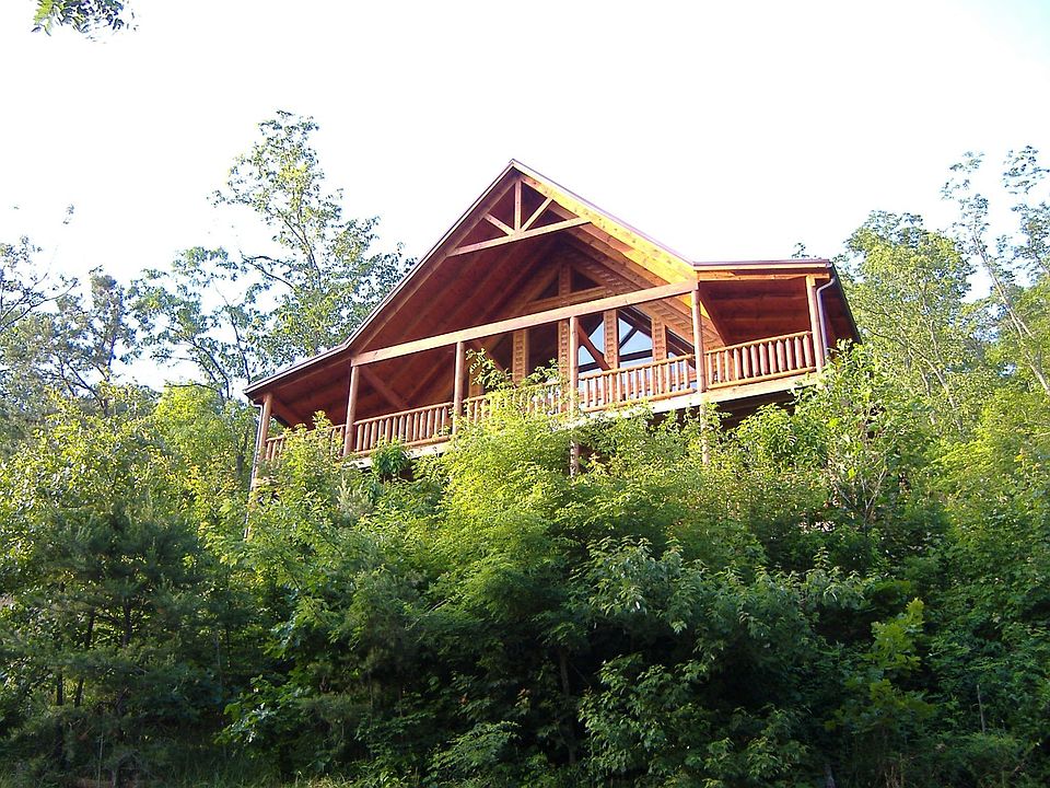 Interior is all exposed beams and T&G pine. Exterior is "D" profile log siding. Home is at end of paved road with paved driveway