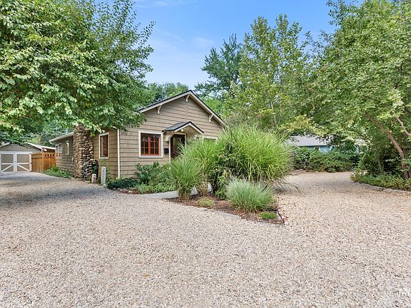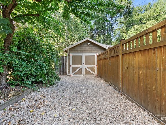 This quintessential North End cottage, sitting on .32 acres surrounded by its own private park, features double gates swinging open to established perennials, strawberries, blackberries, grapes, fruit trees, and raised garden beds. A gardener’s & entertainer’s dream, the expansive yard w/ several decks and patios, offers endless nooks, crannies, & covered vine hideaways – truly a rare North End treasure! An easy bike ride to Hyde Park, restaurants, Camel’s Back, Hulls Gulch, the Greenbelt and 2 blocks from Elm Grove Park, this historic cottage has large open rooms w/ plenty of natural light from original French windows. In the shade of mature trees awaits one of the North End’s nearly forgotten treasures, the Old Blair Market, originally located on the corner of Irene and 25th. Renovated in 2019, the 736sf workshop has new roof trusses, insulation and 220v power. The 1-car garage w/ 2 attached rooms presents an Airbnb opportunity, making this one of the most unique & charming properties in the North End!