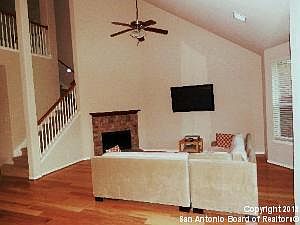 Two story home offers plenty of light. Stunning oak wood floors on lower level. Formal living/dining combination. Breakfast Bar Kitchen with granite counters and stainless steel appliances. Vaulted ceiling in family with wood burning fireplace. Master bedroom downstairs with bay window and ceiling fan. Master bath features double vanity, separate shower and whirlpool tub. Upstairs Game Room with spindle rail banister overlooks below. Fifth bedroom with built-in speakers could be media room. Covered patio.