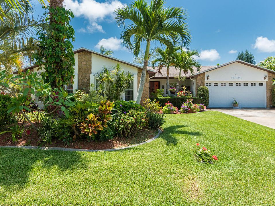 Canalfront + Pool +Boat House/Lift + Large Entertainment Deck on the Dock & Tons of Entertaining Space by the Pool. This house is pristine from the garden club yard to the granite countertops. 3 Bed plus a small office/hobby room, 2 Bath & oversize garage make this home feel larger than it is. Extras include upgraded electric panel box (no aluminum wiring was in this home, skip trowel ceilings, low maintenance laminate& tile floors, lights under the cabinets, modern baseboards & crown molding, newer interior doors, closet organizers & a gazebo. Waterfront views from the family room, kitchen (with pass through window), eat-in-area, office & master bedroom. Tons of shaded & unshaded pool deck + exquisite gardens. This is the whole package at a steal me price!