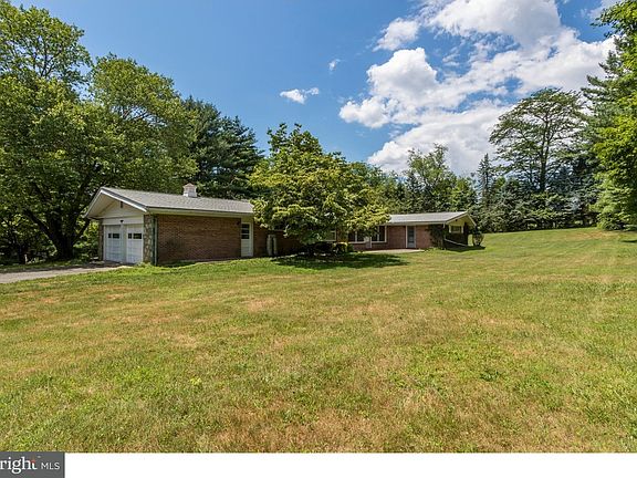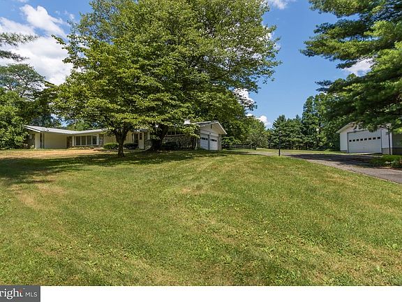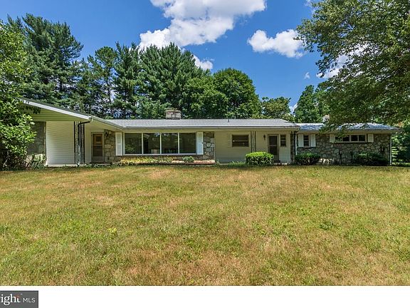 Centered on a 2.35 acre corner lot with mature trees, this 5 bedroom, 3 bath ranch home offers a bright and spacious floor plan for everyday living and entertaining. A large living room with wood burning fireplace opens into the family room with exposed stone accent and door to a private patio overlooking the backyard. Both rooms feature hardwood floors, custom built-ins and a wall of windows letting in lots of natural light. Hardwood floors continue into the inviting dining room. The adjacent kitchen has newer stainless steel appliances, including a Dacor 6-burner gas range, a Kitchen Aid dishwasher and side-by-side refrigerator. Fresh, neutral paint is found throughout the five bedrooms and an office/study. The spacious master bedroom offers two large closets, built-in drawers, access to the back patio and an en suite bath with walk-in shower and tub. A whole-house fan keeps the interior comfortable and cool. For the car enthusiast, there is an attached two-car garage as well as an additional detached garage that can hold up to six cars. Great location close to Lehigh University, Promenade Shops, downtown Bethlehem, Hellertown and Route 78 for easy commuting.